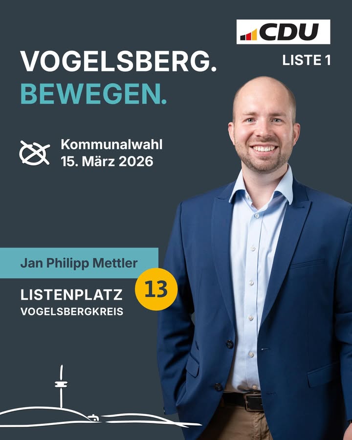 Philipp Mettler, 27 Jahre aus Ulrichstein. Lehrer und Bezirksvorsitzender der Jungen Union Osthessen. Erfahrung aus dem Beruf als Lehrer. #CDU #Kommunalwahl #Vogelsbergbewegen