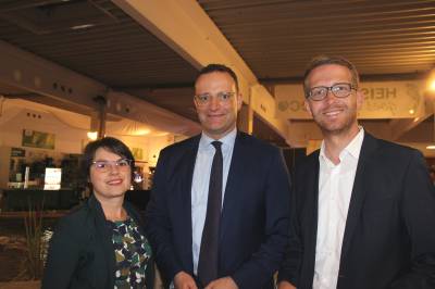 Zuvor hatte der Geschäftsführer der Firma Heissner, Rolf Papenheim, in einem flotten Beitrag die über 150jährige Geschichte des Unternehmens, das auch der Erfinder des Gartenzwergs ist, erläutert. Daher gab es für den Berliner Spitzenpolitiker aus dem früher „Zwergenfabrik“ genannten und heute weltweit operierenden Unternehmen der Wassergärten- und Gartengestaltung einen Keramik-Zwerg aus dem Jahre 1980, dem Geburtsjahr von Jens Spahn.